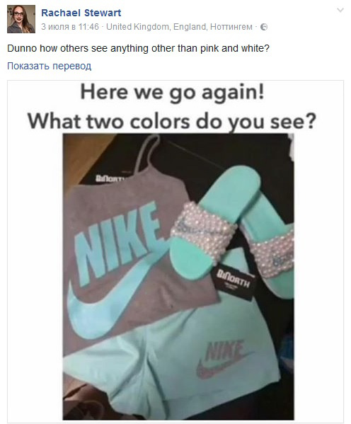 Новая оптическая иллюзия появилась в Интернете: лучшие умы гадают, каких цветов одежда и шлепанцы на фото: голубого и серого или розового и белого?
