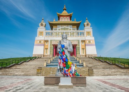 Золотая обитель Будды в Элисте не уступает Храму Золотого Будды в Таиланде. Это крупнейший в России буддийский храм, называемый здесь хурул. В храме располагается самая большая в Европе статуя Будды высотой 12 метров, которая покрыта сусальным золотом и украшена бриллиантами. Да и сам храм впечатляет красотой и величественностью — огромное белоснежное здание выполнено в традиционном для буддийской культуры стиле и обнесено забором с чередующимися через каждые пять метров небольшими статуями. Он расположен в самом сердце Калмыкии, и его видно из любой точки Элисты. Посетители могут входить в хурул через любые из четырех ворот с каждой стороны света, но главными по калмыцким обычаям считаются южные.