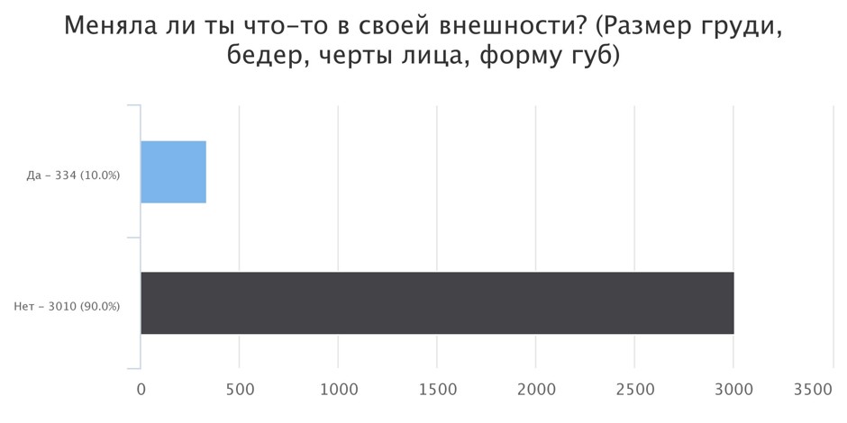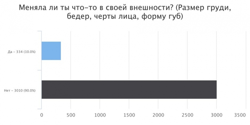 85% наших читательниц признались, что хотели бы как-то изменить свою внешность. Но тем не менее только 10% женщин действительно меняли тело хирургическим путем.