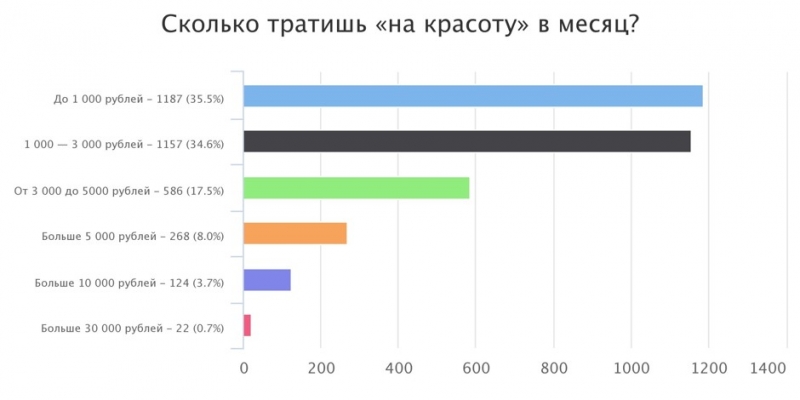 В основном женщины тратят «на красоту» от 1 000 до 3 000 рублей в месяц.