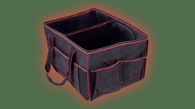 Прочная ткань, твердые стенки (не тряпка), липучки на дне, стоит на месте в багажнике и не падает.Органайзер 9