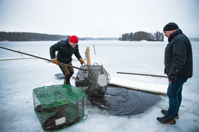 Утро второго дня в Финляндии рыбное. Нас отвозят на производство компании Puumalan Lohi и показывают, как рыба растет в естественной среде. Качество продукта хорошее — ведь ее выращивают только до двух лет, а затем убивают.