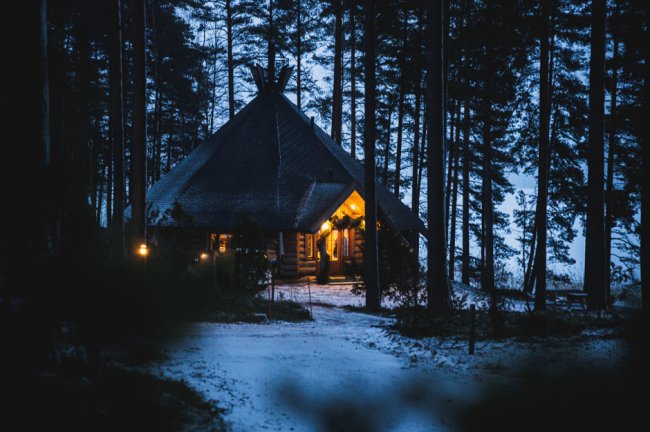 После плотного ланча трудно вдохнуть. Погружаю себя, тяжелую от обеда, в автобус. Следующее остановка — отель Ярвисюдан, который находится на берегу Саймы. Мне достается жить в иглу. Внутри дом полностью деревянный, есть небольшая кухня, ванная и спальня с видом на небо. Первое желание — залезть в кровать и не вставать с нее, наблюдая за движением облаков, а затем любуясь звездным небом.