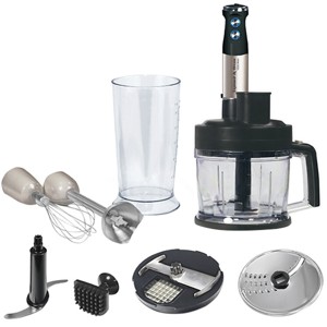 Мощный многофункциональный гаджет с большим набором насадок и аксессуров. Соорудить праздничный ужин с минимальными затратами времени и сил теперь смогут все. Блендер не только мелко нашинкует овощи, но и нарежет кубиками ингридиенты для салата, моментально взобьет суп-пюре, смузи и многое другое.