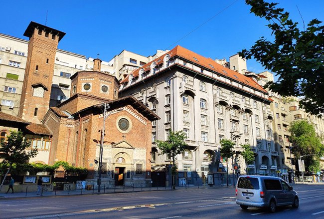 Бухарест. Итальянская церковь в стиле Ренессанса, правее — неороманское здание, еще правее — дом в стиле ар-деко на фоне модернистского жилого массива. Все эти здания построены в докоммунистический период. Фото: предоставлено героем материала