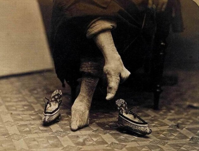 Данный тренд был невероятно популярен в Древнем Китае в X веке, ведь размер ножки служил своеобразным показателем статуса девушки, поэтому маленьким девочкам с четырехлетнего возраста начинали бинтовать ноги, что в итоге приводило к чудовищной деформации ноги, которую окрестили ножкой-лотосом, из-за схожести с цветком лотоса. Девочкам нанимали специально обученных людей и начинался долгий процесс формирования ножки, который проходил в несколько этапов, во время первого ребенку ломали пальцы на ногах, во время второго туго бинтовали ногу, чтобы она не росла, а в последние два уже создавали эту самую «дугу». Как итог – инвалидность и боли в ногах до конца жизни.