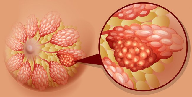 В норме клетки организма функционируют четко по внутренним часам и по отработанной схеме. Однако механизм может нарушаться, и тогда клетки начинают делиться бесконтрольно. В случае рака груди это происходит с клетками молочных протоков или долек молочных желез.