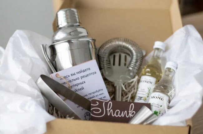 Подарок для тех, кто хочет освоить новый навык (или даже профессию) или укрепить уже полученные знания в деле коктейльного искусства. Помимо шейкера в наборе есть щипцы, ложка для размешивания ингредиентов, стрейнер (отсеиватель) и джиггер (дозатор). Вот видите, мы уже начинаем изучать новые слова.