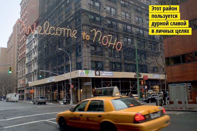 Загадочное слово «Сохо», символизирующее богемные кварталы и подходящий стиль жизни, — это всего лишь заглавие нью-йоркского квартала, значащее «к югу от улицы Хьюстон»(SOuth of HOuston Street). По этому принципу свои Сохо возникли в Гонконге, Китае, Голливуде(английский Сохо, но, произошел от охотничьего клича «Сохо!», бытовавшего в этих местах в XVI веке). Но хватит о Сохо. Ведь малюсенько кто знает, что есть еще и Нохо(«север улицы Хьюстон»)! Район не ужаснее Сохо, лишь репутация не таковая звучная.