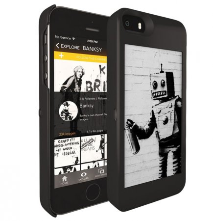 Ты грезил о YotaPhone, но пришлось к-пить iPhone. Понимаем твою боль. Немного унять ее сумеет этот чехол. Помимо явной функции — предохранения телефона от ударов и царапин, он может предложить юзеру доп экран на электронных чернилах. Увы, не таковой многофункциональный, как у YotaPhone. Этот способен работать лишь со статичными изображениями. И поменять их придется с поддержкою специального прибавления. Зато е-ink нетребователен к батарее. так что можешь выводить на экран карты, фото, напоминания.