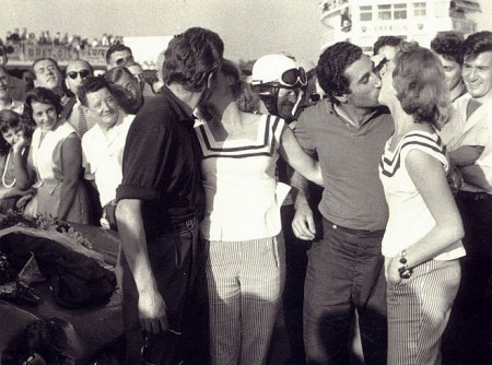 С ревущим движком(некие затыкают уши)на площадь выруливает красноватое авто с номером 531. «Феррари, Феррари!» — взрывается приветственными воплями масса. Те, кто разбирается в гонках и успел занять комфортную позицию для наблюдения за водителями, здесь же прибавляют: «Да, это сумасшедший маркиз!Де Портаго!» Обычная процедура: судья подбегает к машине, отмечает в документах факт прибытия в Рим, место в текущем зачете. Вдруг в процедуру вносится особенное обилие: к машине подбегает стройная дама в плаще, с платком на голове. Девушка наклоняется к пилоту, передает ему записку. Они обмениваются горячим поцелуем, который торопятся увековечить папарацци. Приходит время для комментариев знатоков светской хроники, благо посреди созерцателей находятся и такие. «Это Линда Кристиан, актриса. У их с маркизом роман». — «Так он же женат!Нет?» — «И когда это его останавливало?»