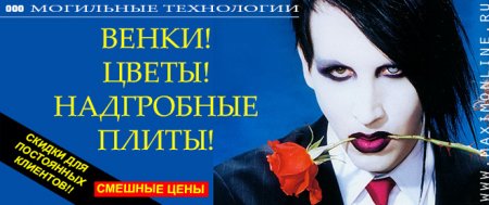 Иностранные СМИ вовсю забавляются, следя как изобретательный российский бизнесмен употребляет фото рок-звезд для рекламы собственных услуг. Ты ведь видел тот знаменитый плакат с Томом Йорком?MAXIМ пофантазировал и сочинил для тебя еще много абсолютно безвозмездных маркетинговых плакатов с личиками Фредди Меркьюри, Мэрилина Мэнсона и иными буржуазными физиономиями.