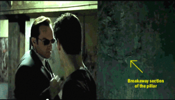 На стоп-кадре совершенно чётко видно элемент колонны, который в следующий момент вылетит от удара.