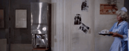 В фильме есть сцена, в которой официантка пытается выключить свет локтём. У неё это очевидно не выходит, однако свет всё равно магическим образом выключается.