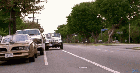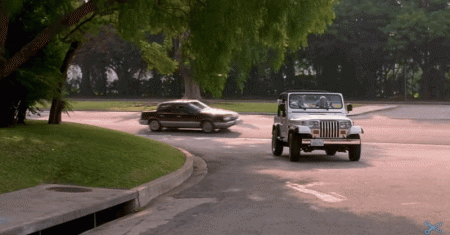 Во время экзамена по вождению героиня Алисии Сильверстоун задевает припаркованное авто и сносит боковое зеркало своего Wrangler.