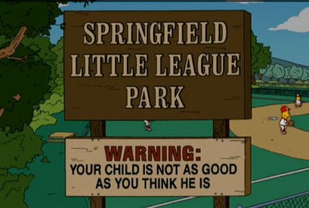 «Спрингфилдский ребяческий бейсбольный стадион. Предупреждение: ваш ребёнок далековато не так хорош, как вам кажется»