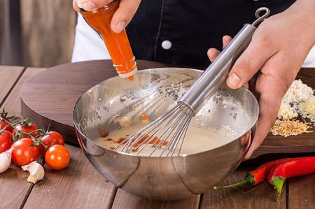 Чтобы приготовить соус для креветок, смешай 50 г майонеза, 5 г табаско и 3 г мелко нарубленной петрушки.