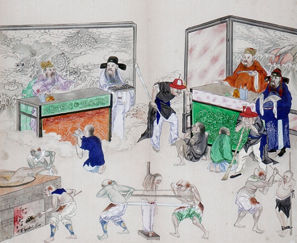 Одна из множества картин с изображением 10 судов Ада, династия Цин, Китай, 1800-1849 гг.