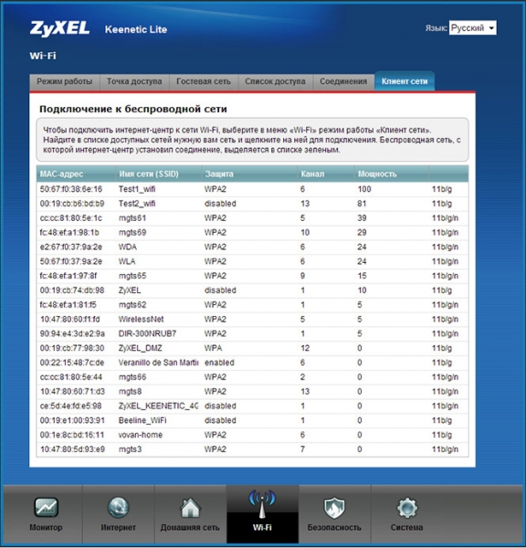 Запуская поиск сети, ты наверное не разов подмечал, что по твоей квартире разгуливают еще пара-тройка, а то и дюжина чужих Wi-Fi сигналов. Мало кто почему-либо думает над тем, что чужие сети работают в том же спектре частот, что и твои, и в этом нет ничего превосходного. Согласно эталонам, в России для работы Wi-Fi-сетей выделено 13 частотных диапазонов. Мы стащили из аннотации к знаменитому роутеру ZyXEL Keenetic Lite скриншот конфигурационного меню — там видно, как в режиме «Клиент сети» роутер указывает занятые соседями каналы. Есть и отдельные программы, делающие то же самое, к примеру inSSIDer. Тебе остается только выучить приобретенный перечень, выбрать самый вольный из 13 каналов и выставить в маршрутизаторе его по умолчанию.