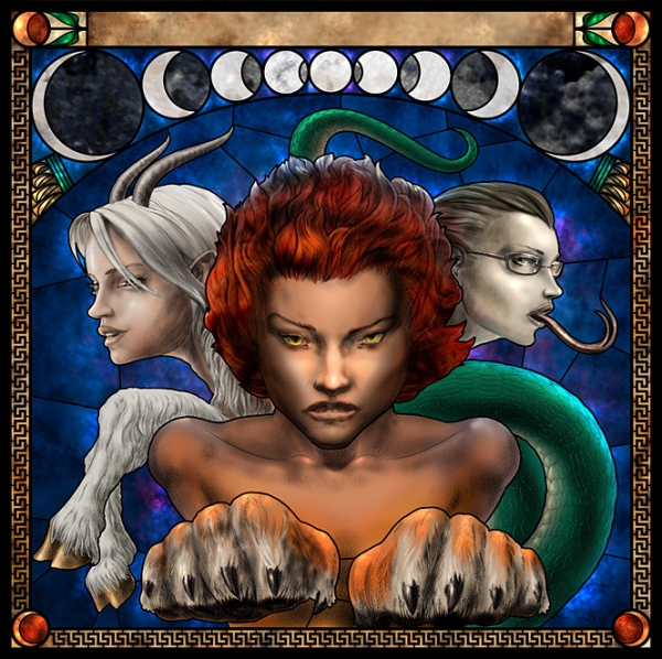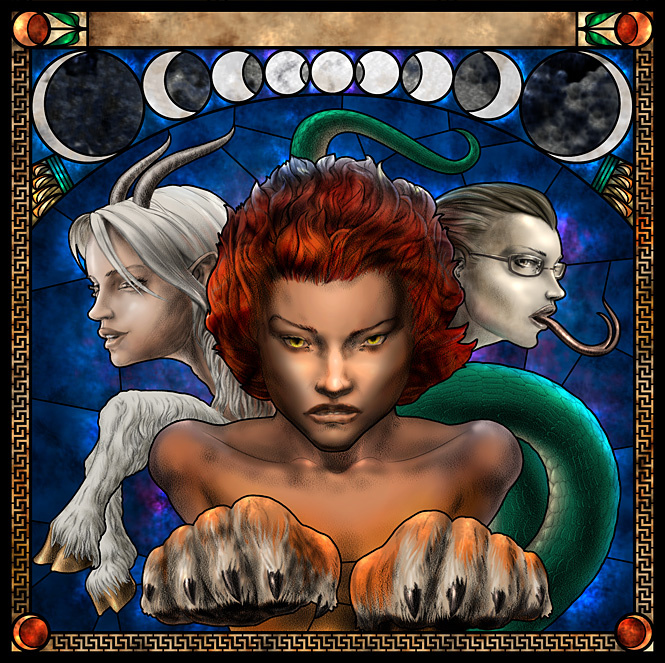 А все поэтому, что луна — это дама и неважно какая дама тоже вроде бы луна. Лунной богине поклонялись в виде Триады — девственницы, зрелой женщины-нимфы и старухи*. Изображали Лунную богиню в виде Химеры — существа из 3-х долей. Девушку означала львиная голова, нимфу — тело козы, а старуху — хвост змеи. Лев девушки символизировал гордость и жестокость. Коза дамы — нежность и страстность. Змея старушенции — мудрость и коварство.