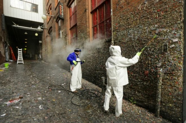 Двадцать лет мещане и туристы скрашивали ясным креативом неясную стену городского театра около центрального рыбного базара Пайк-Плейс-маркет!Двадцать лет туристы всех государств торопились посетить неповторимую достопримечательность!Суммарная масса жвачки достигла тонны!