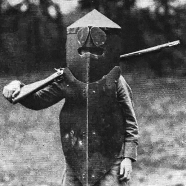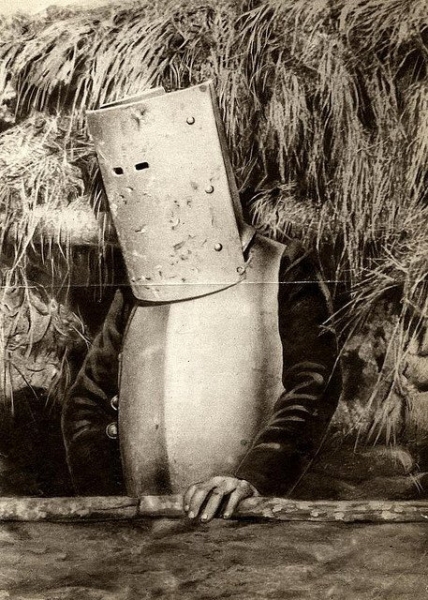 После того, как любопытные купцы привезли из Китая порох, людям в доспехах стало тоскливо. И доспехи в итоге сняли за ненадобностью. Кирасиры не счет, их было не так много. Но после появления пулемета люди без доспехов впали в еще большую тоску. И во время Первой мировой американцы придумали броню Брюстера. Примечательно, что это снаряжение весом в 18 килограммов использовали, с основном, снайперы. Очевидно, они любили маскироваться среди мусорных бачков и у телеграфных столбов.