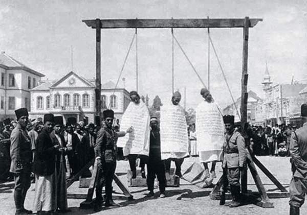Публичная казнь повстанцев на площади Марджех в Дамаске