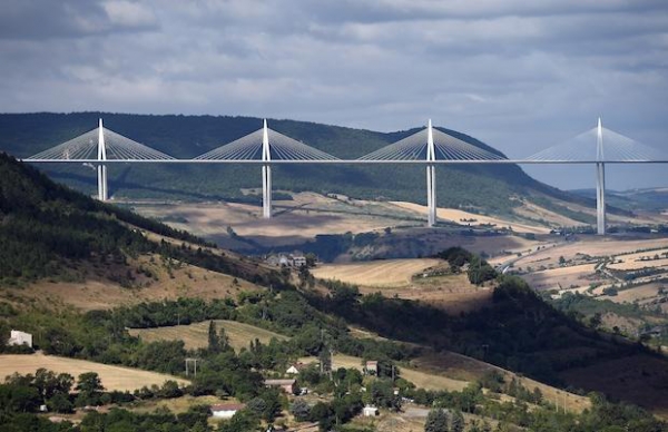Официально этот гигант инженерной идеи величается мостовым сооружением вантовой системы, а «мост» — это мы так, фамильярничаем. Длина виадука — 2460 метров. Фактически он является долею шоссе, которая объединяет городка Париж и Безье. Виадук открылся в 2004 году и здесь же получил титул «самый высочайший транспортный мост в мире». Высота одной из его опор — 341 м(Эйфелева башня, ежели что, доросла только до 324 метров).
