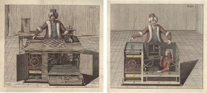 Искусный шахматист, известный как «Турок», был изобретён в 1770 году знаменитым словацким механиком Вольфгангом фон Кемпеленом. Робот славен тем, что обыграл Наполеона и Бенджамина Франклина. Правда секрет заключался в том, что внутри сидел человек и руководил, то есть, собственно, водил руками андроида.