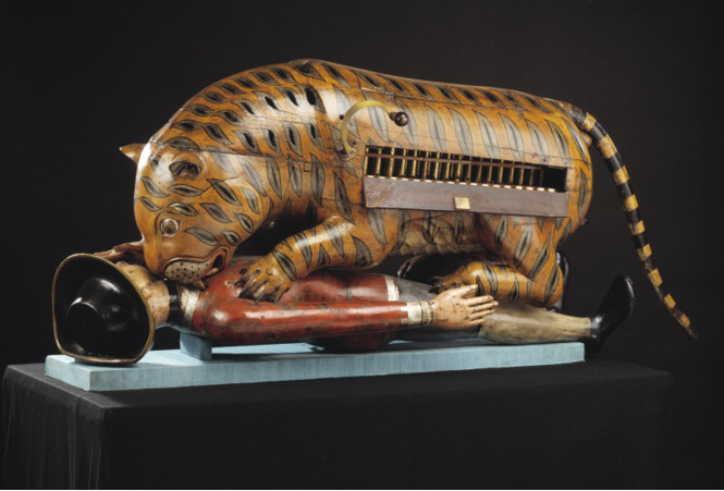 Тигр Типу был сделан из дерева в XVIII веке для султана Типу, который правил княжеством Майсур в Индии. Хищник готовится перегрызть горло солдату британской армии, выполненному в натуральную величину. Если покрутить рычаг, то жертва начнёт дёргать рукой и издавать стон. Кроме того, сам хищник является небольшим органом.