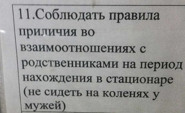Мало того, в этом грозном родильном отделении екатеринбургской больницы супругам рожениц воспрещено сажать на колени медсестер!(Прислал Боб Фарбер.)