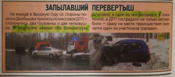 А вот и окончание заметки: «Хотя прибывшие на место трагедии пожарные и затушили огонь, погасить пламя им все таки не удалось...»