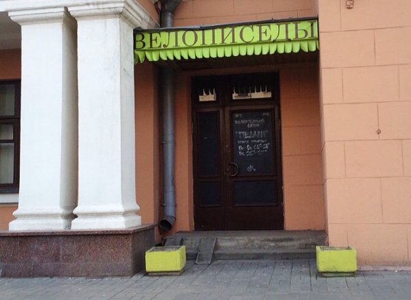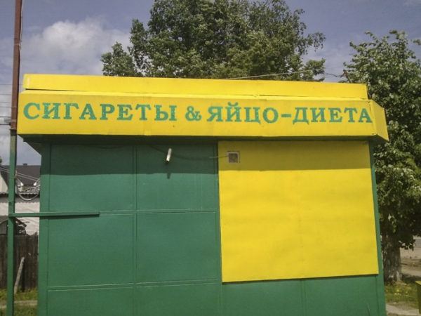 «Я буду длинно гнать велописед, в густых лухаг его оснатовлю!» — напевал классик. Ему вторит вывеска минского магазина, ласково предоставленная Константином Огурцовым.