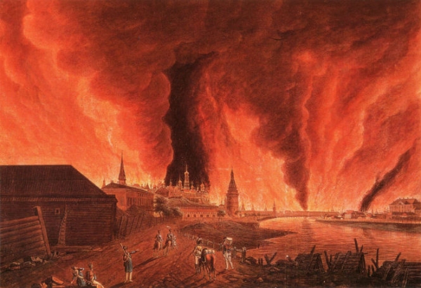 Существует несколько версий обстоятельств пожара. По самой знаменитой это организовал градоначальник граф Растопчин. Также есть воззрения, что это инициатива патриотичных людей, или последствия мародерства(перед уходом власти раскрыли городские тюрьмы и отпустили на волю около сто законопреступников, которые немедленно занялись обыкновенными для себя делом — грабежом оставленных домов). Как бы то ни было, пожар оказался на руку русской армии. Наполеон планировал зимовать в Москве, а в разрушенном и полном мародеров городке ему пришлось туго. В конце концов он отступил, а что было далее, ты и сам знаешь.