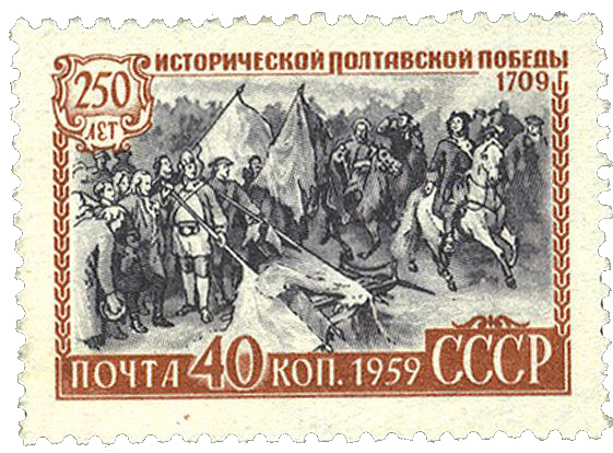 7. В 1959 году, в Советском Союзе выпустили марку, посвященную 250-летию Полтавской битвы. Но времена были непростые, сложная геополитическая ситуация (не то, что сейчас) влияла даже на филателию. Генеральный секретарь Никита Хрущёв готовился к международному визиту в Швецию, поэтому советское руководство решило не раздражать скандинавов напоминанием о годовщине. Тогда было найдено компромиссное решение: марка поступила в продажу, но всего на несколько часов. Весь нераспроданный тираж был уничтожен. В Швецию, надо сказать, Хрущев так и не поехал.