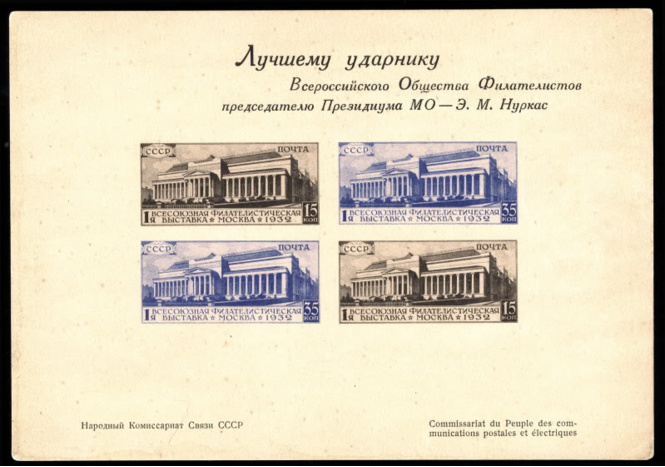 8. Самая дорогая советская марка называется «Лучшему ударнику Всероссийского Общества Филателистов». Она была издана в 1932 году тиражом в 25 экземпляров. Из них три были именными, в том числе марка, принадлежащая председателю Президиума Московского общества филателистов Нуркасу. Когда Нуркас попал лагерь (что часто случалось с советскими людьми в тридцатые годы), он смог взять с собой, среди личных вещей, несколько марок. Вскоре «Лучший ударник» попал к лагерному доктору, который много лет спустя эмигрировал. В 2008 году в США марку продали на аукционе за 776 тысяч долларов.