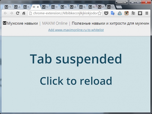 «Хром» — одна из самых прожорливых программ. Если ты привык держать открытыми много вкладок, то замечал, что из-за этого тормозить начинали все программы. Расширение The Great Suspender «отключает» табы, которые долго были неактивны, и освобождает оперативную память для более важных задач. В настройках можно указать время, через которое блокируется вкладка; сайты, которые не нужно «отключать».