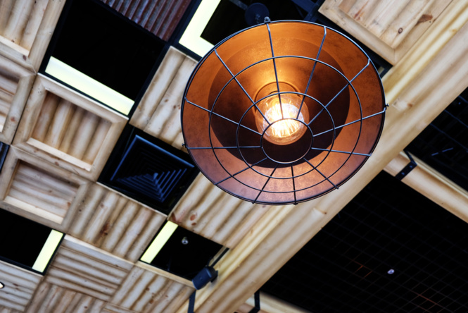 Вместо ажурных люстр и невнятных ламп освети кухню грозными светильниками в индустриальном стиле. Металл и резкие формы дополнят грубые и железные элементы в отделке(о которых мы побеседуем ниже).
