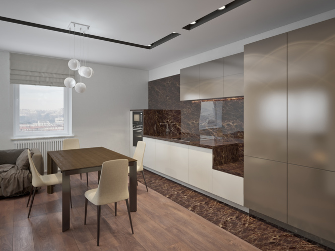 Да-да, и на мужской кухне есть место текстилю. Шторы стоит выбрать рулонные либо плиссе(это как жалюзи, лишь полосы соединены меж собой таковыми же полосами)— они смотрятся лаконично, превосходно оберегают от солнца и укрывают происходящее в столовой от соседских глаз.
