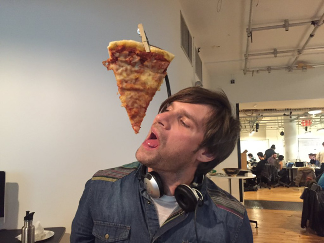 Не знаешь, что подарить другу, а селфи-палка у него теснее есть?Устройство-помощник для поедания пиццы без рук станет образцовым решением.