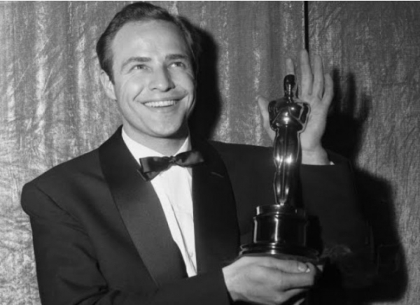 На церемонию вручения в 1973 году актер и совсем не появился, его заслугу за «Крестного отца» отобрала дама, представившаяся как Сачин Малое Перо. Поднявшись на сцену, она прочитала речь типо от личика Марлона Брандо, что он против ущемления прав коренных народов США. Позже оказалось, что это была переодетая актриса Мария Круз(мексиканка по национальности).