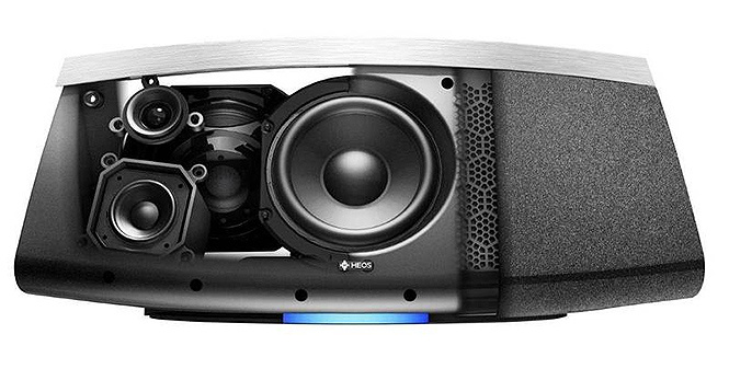 Heos 3 — корпус размером с вазу, звук размером с квартиру. В кружочке показано, как он устроен внутри.