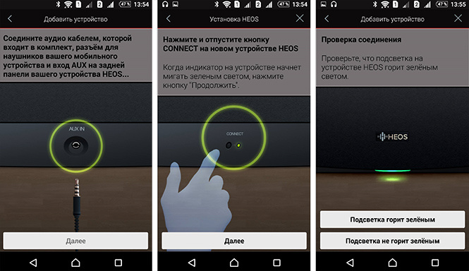 На регистрацию колонки в Сети уходит пара минут, но для этого надо один раз соединить ее с мобильным устройством (которое в дальнейшем будет использоваться как пульт и как музыкальный хаб). Нам было лень читать мануал, как всем нормальным людям, но мы вдруг поняли, что программа Heos сама пишет все, что надо сделать, причем по-русски.