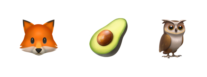 Также создатели почему-то особо отмечают появление таких эмодзи, как «лисичка», «авокадо» и «сова».