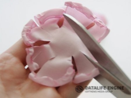 3. Ножницами для ткани надрежьте все 5 кругов так, как показано на рисунке. Не прорезайте до конца, чтоб лепестки не развалились.