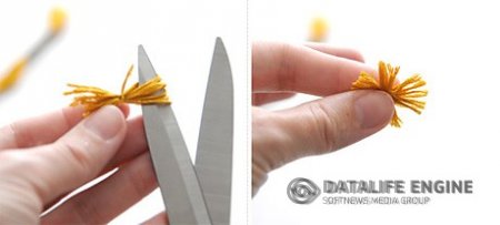 при необходимости подровняйте кончики. Приплюсните помпон пальцами, позже отложите в сторону.